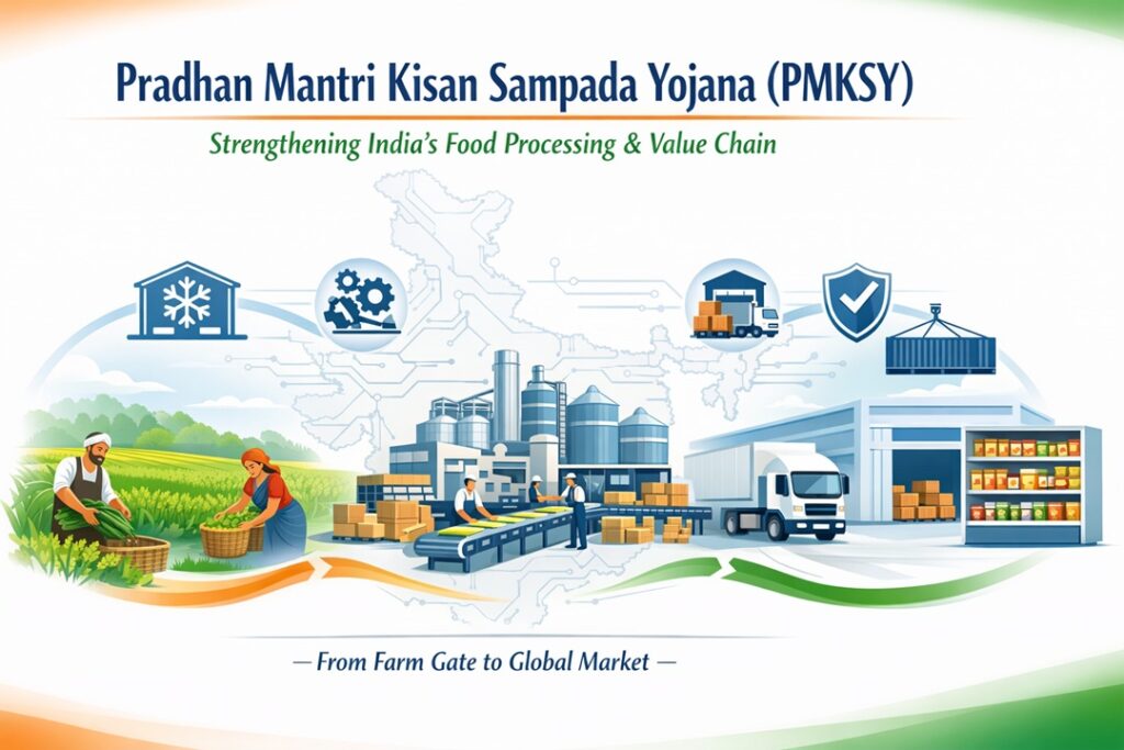 Pradhan Mantri Kisan Sampada Yojana (PMKSY) Context The Pradhan Mantri Kisan Sampada Yojana has recently gained attention for its contribution