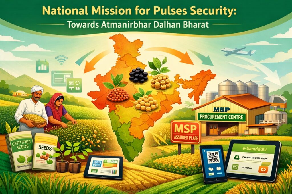 Primary Goal – Achieve long-term pulses security by boosting domestic production and reinforcing MSP-backed procurement mechanisms.